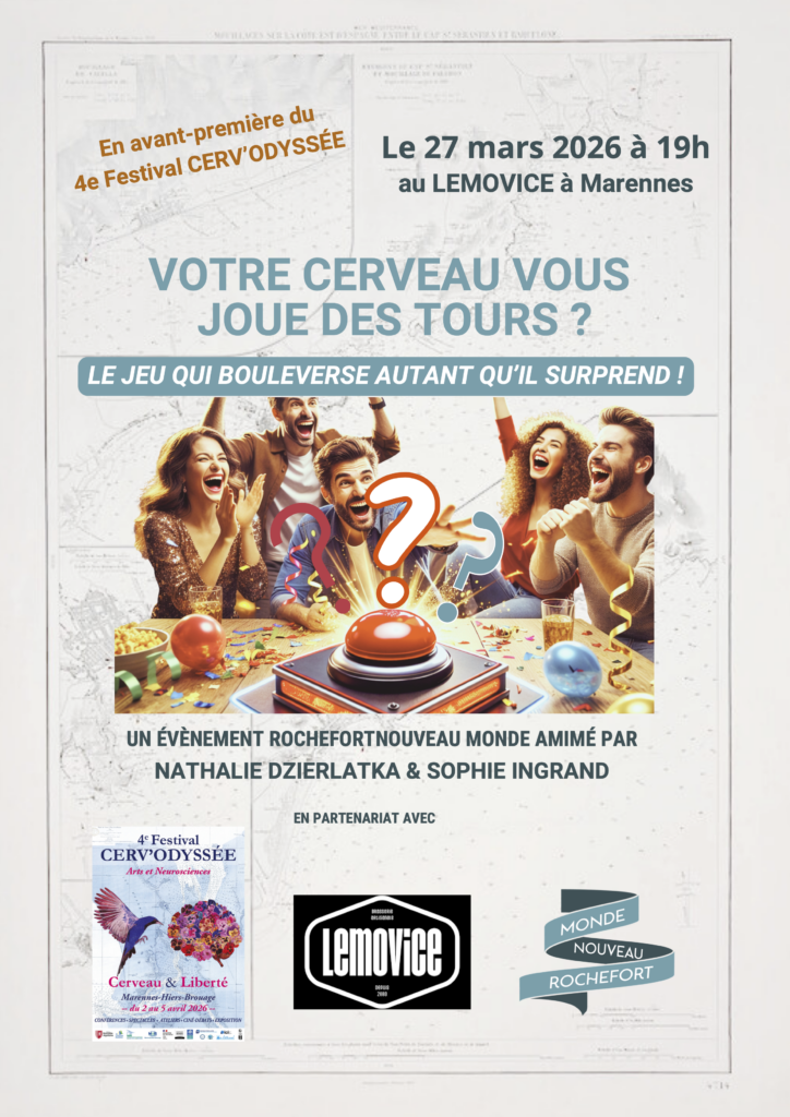 Rochefort Nouveau Monde animera en avant-première du 4ème Festival Cerv’Odyssée une soirée Quizz au Pub LEMOVICE à Marennes, le 27/03 à 19h. C’est l’occasion de partager un moment convivial entre amis, famille… et de se laisser surprendre sur sa connaissance des biais cognitifs et de leur impact sur nos modes de penser.